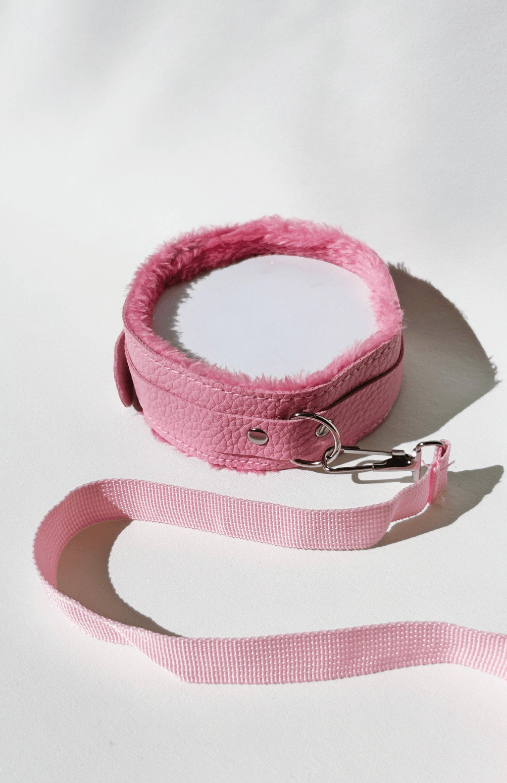 Liberte seu lado mais ousado com a Coleira com Guia | Rosa. Feita em Courvin e PVC, essa peça é perfeita para quem deseja explorar novas sensações e vivenciar experiências intensas.